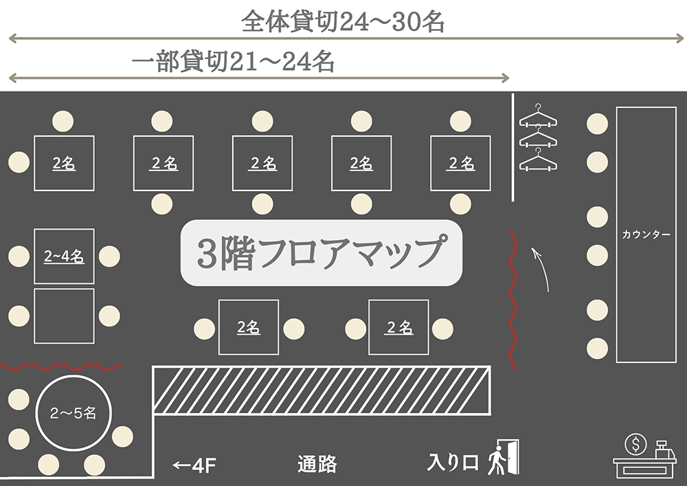 ※事前に1~2名など人数変更ある旨をお伝えいただければ、柔軟にご対応させていただきます。